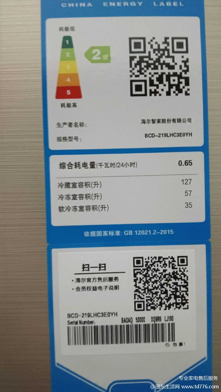 9.9成新海尔冰箱原价1550,现半价不到处理