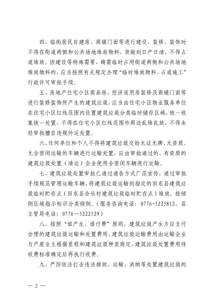 关于进一步规范城区建筑垃圾处置的通告