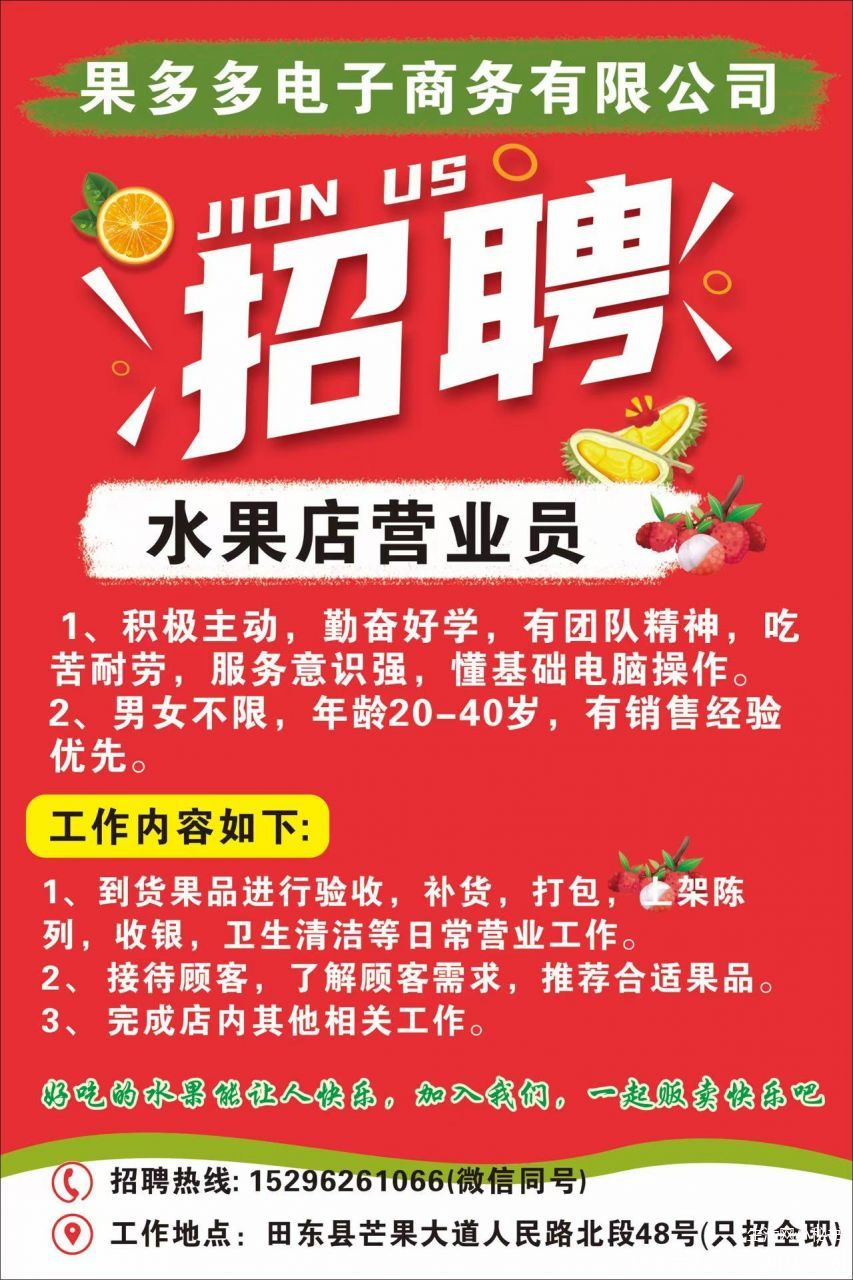 果多多水果店招聘全职店员
