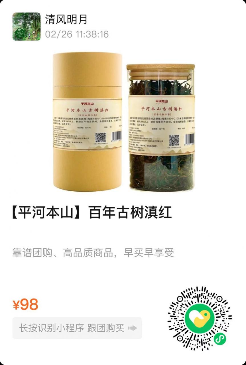 采摘于云南临沧凤庆(世界茶树发源地)海拔1800-2100米的古茶树博物林中“时间果”自有古茶树,树围0.6-0.8米,树高3米以上,树龄百年。全部纯料春茶,以滇红传统工艺制作而成。淘宝搜“时间果古树茶”