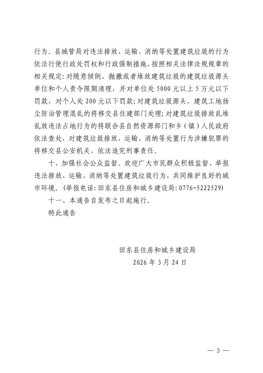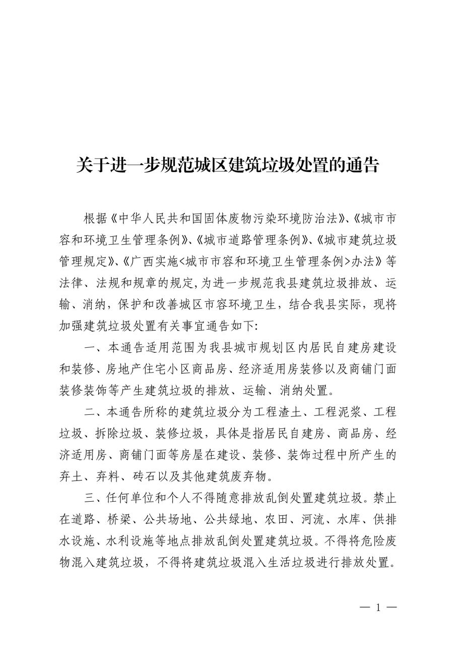 关于进一步规范城区建筑垃圾处置的通告