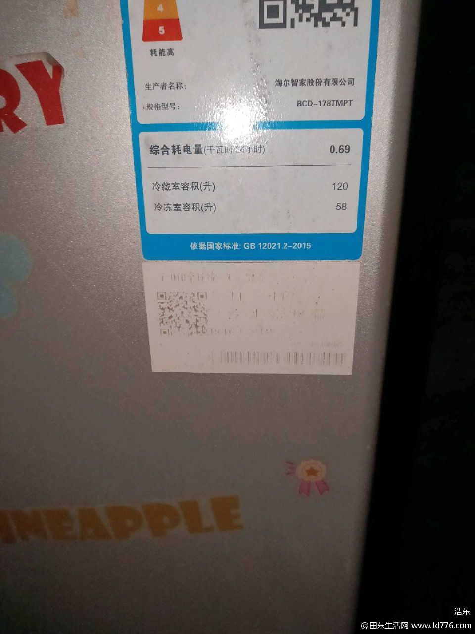 170升海尔2门冰箱